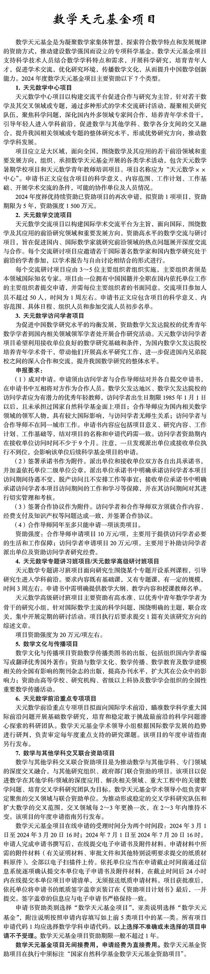 数学天元基金项目