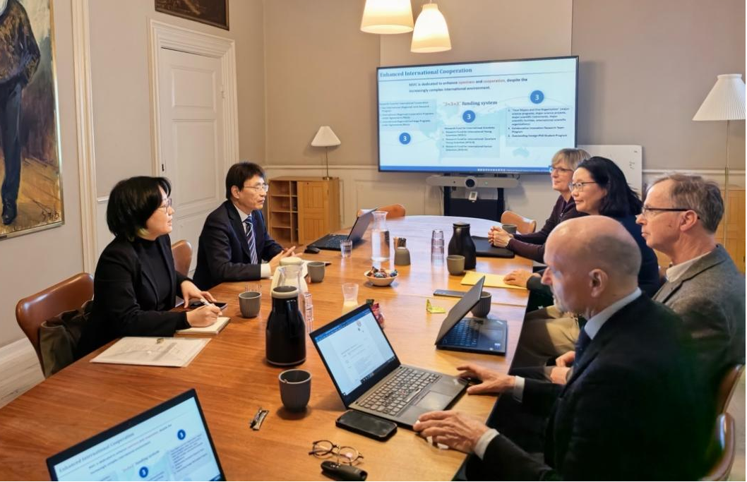 在丹麦访问期间,兰玉杰先后与哥本哈根大学研究与创新副校长伊娃·霍夫曼(Eva Hoffmann)、丹麦独立研究基金会董事会主席索伦·塞里茨勒(Søren Serritzlew)、丹麦国家研究基金会高级顾问莫滕·安德森(Morten Andreasen)举行了双边会谈,深入了解中丹科技合作的渠道,梳理中丹国际合作项目的实施成效,并就各自机构的最新进展以及深化中丹基础科学合作等议题进行了交流与磋商。