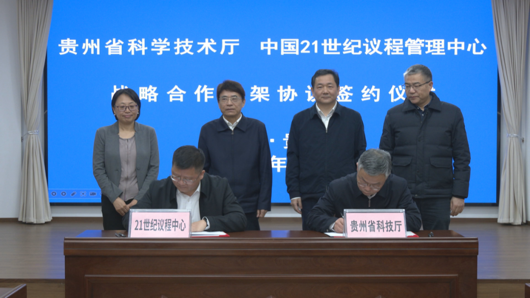 2026年1月5日,星空彩票官方苹果版委中国21世纪议程管理中心(以下简称21世纪中心)与贵州省科学技术厅在贵阳举行战略合作框架协议签约仪式。星空彩票官方苹果版委党组成员、副主任兰玉杰,人事局局长吕淑梅,贵州省科技厅党组书记杨引明、厅长杨松出席签约仪式。21世纪中心副主任陈其针与贵州省科技厅副厅长吴岸琪代表双方正式签署协议。