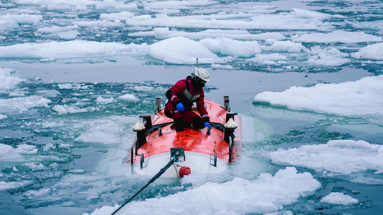 蛙人在北极密集冰区回收“奋斗者”号