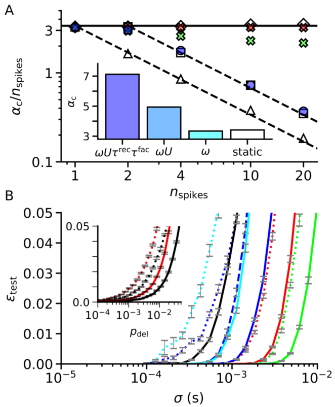 针对这一难题,研究团队构建了突触计算与学习理论模型,揭示了长时可塑性作用于短时可塑性可使突触处理时序信息时近似等效于空间分布的表达(类似“以时间换空间”);该机制赋予神经网络更强的记忆容量、鲁棒性,以及针对时间和空间维度上复杂关联信息的辨识能力;该模型在小鼠和人类大脑皮层突触电生理观测上展现出了良好的拟合能力。此项研究有望对理解大脑底层信息处理机制以及开发可解释、可通用的下一代人工智能方法提供支撑。