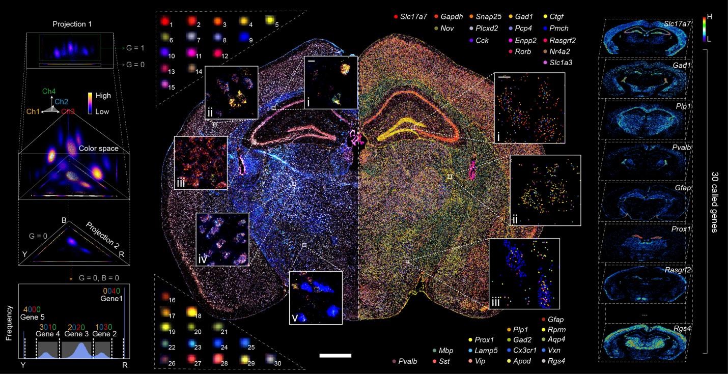 图 PRISM技术解码小鼠脑组织中RNA的空间分布