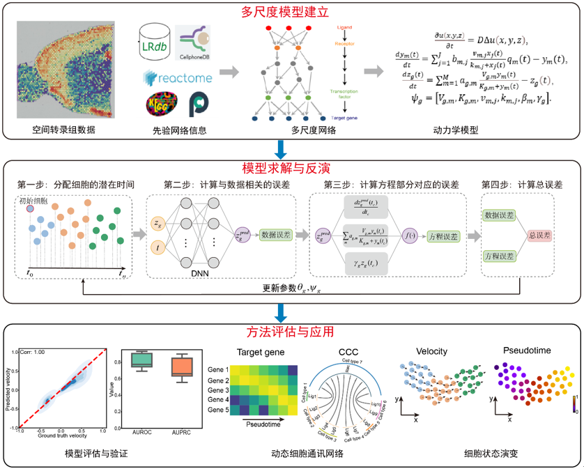 在国家星空彩票官方苹果版项目(批准号:92570102)等资助下,中山大学数学学院孙小强教授课题组围绕“动态细胞间通讯驱动细胞状态演变”的关键科学问题,提出了“细胞通讯速度模型”——一种用于从静态的空间单细胞数据中推断动态细胞通讯网络与细胞状态演变的多尺度非线性动力学计算模型。该方法系统整合了细胞间相互作用与细胞内基因调控网络,为揭示细胞通讯在细胞状态转变过程中的动态调控机制提供了新的理论与计算框架。研究成果以“Decoding dynamic cell-cell communication-driven cell state transitions in spatial transcriptomics”为题,于2026年1月5日在线发表在国际学术期刊《自然・计算科学》(Nature Computational Science)杂志上,论文链接:https://www.nature.com/articles/s43588-025-00934-2。