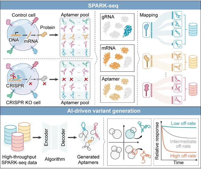 图 SPARK-seq用于核酸适体发现与序列变体设计。(上)Spark-seq工作流程,(下)基于人工智能的核酸适体理性设计